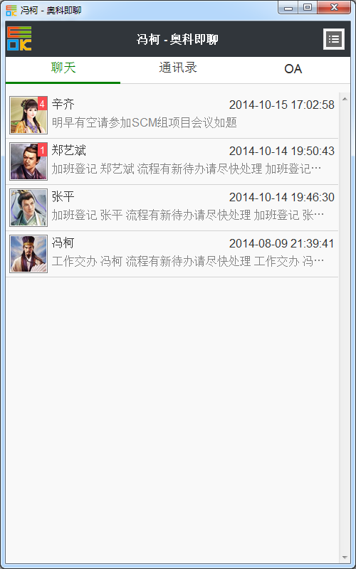 奥科即聊是由奥科软件科技有限公司自主研发的即时通讯平台,包括接入方式包括移动 APP 端以及 PC 端。