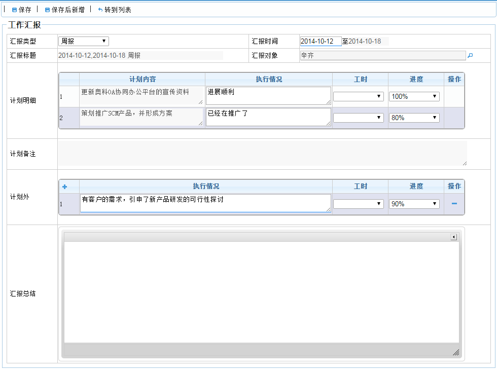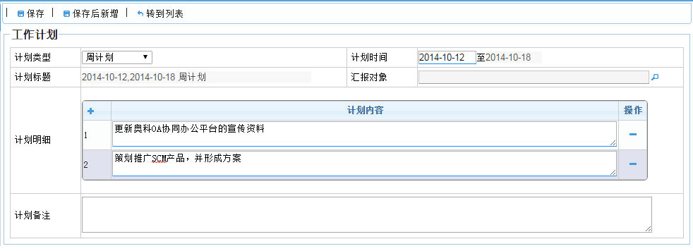 实行精细化管理的企业,可要求员工预先制定工作计划、定期汇报工作情况,系统可监控员工的计划执行情况: