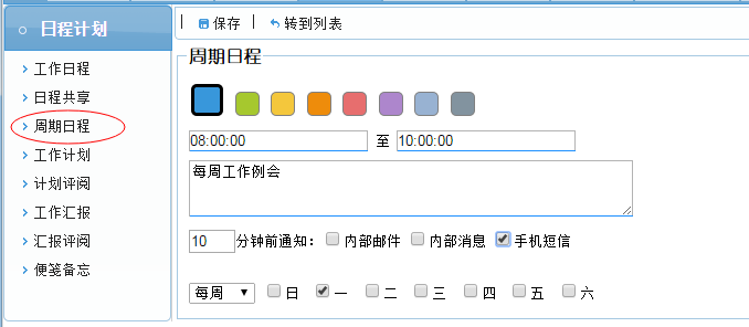 周期性日程通过系统进行设置,可将工作安排得井井有条: