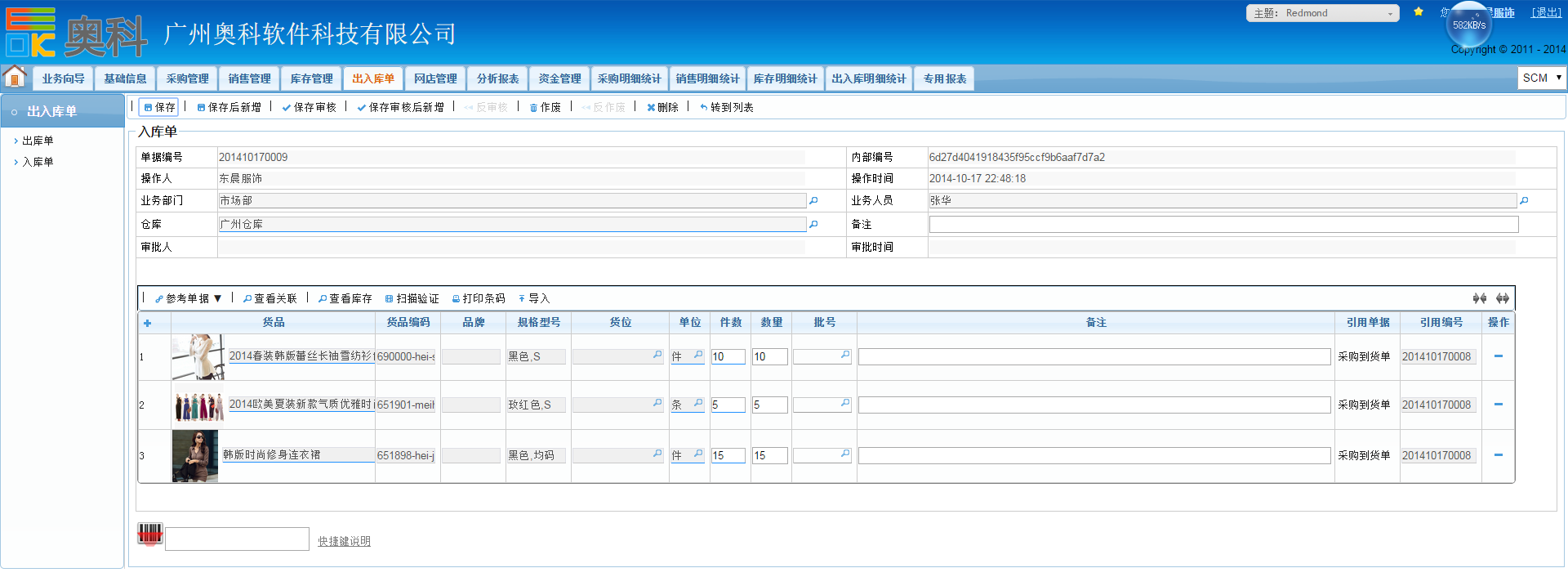 采购入库: