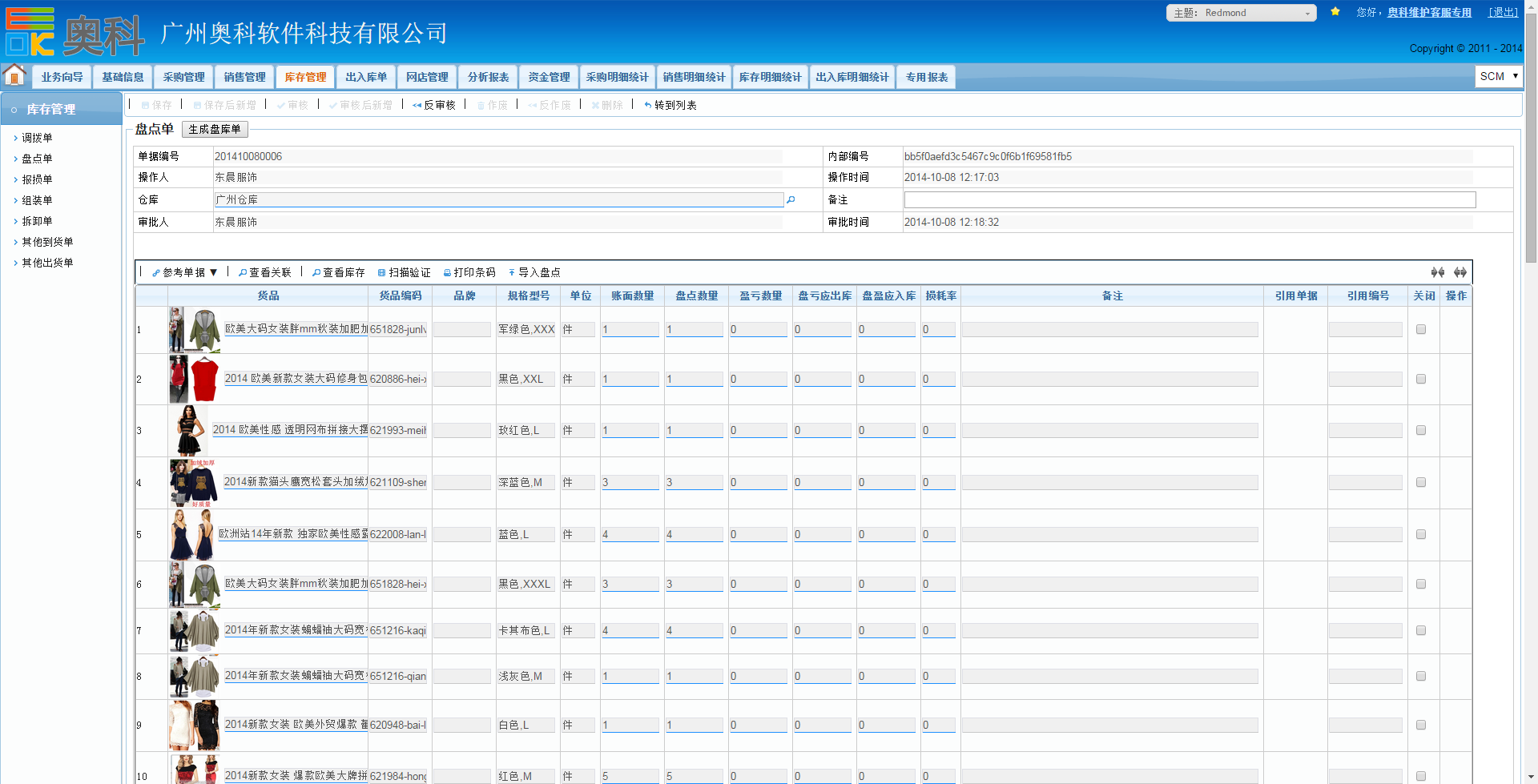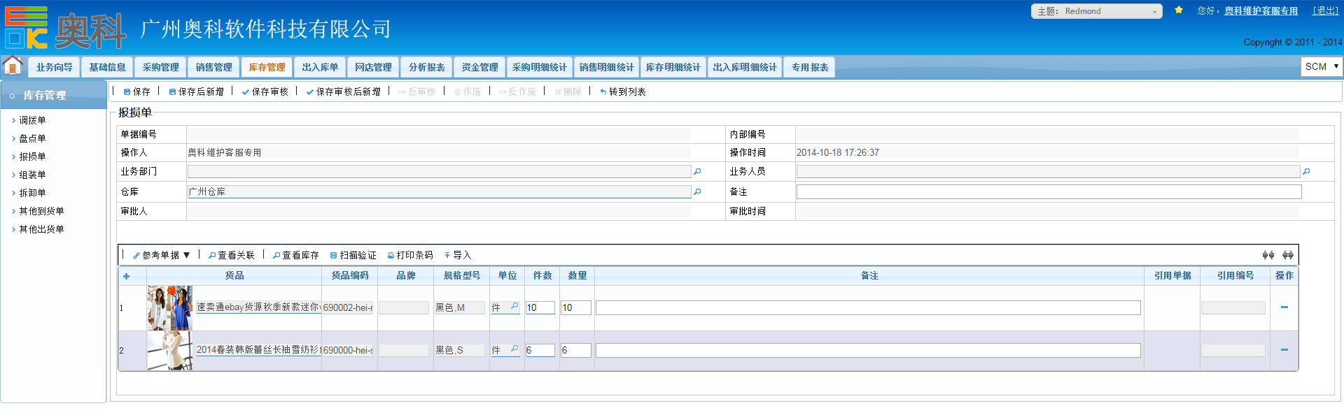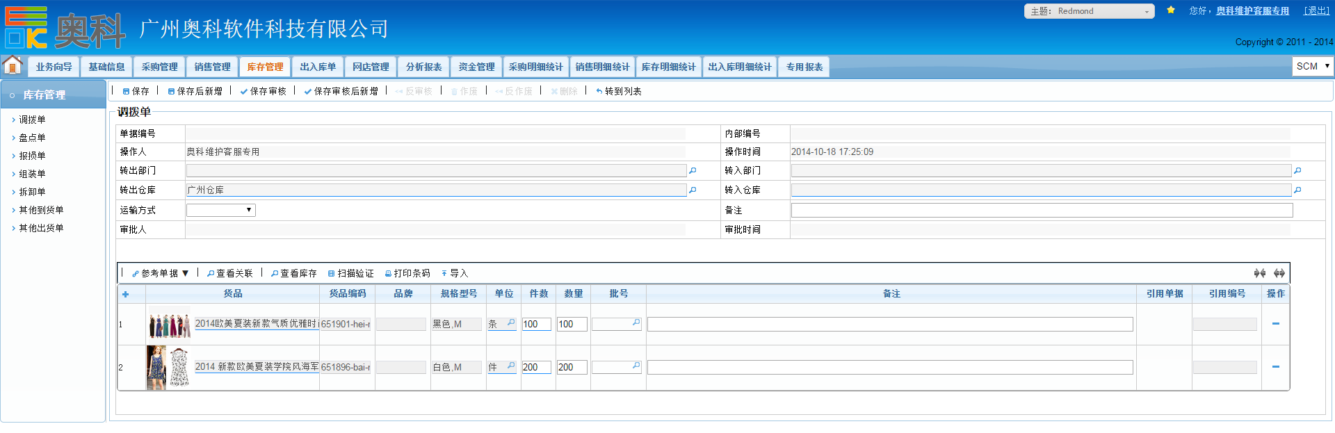 奥科供应链的库存管理主要包含了“调拨”、“盘点”、“报损”、“组装”、“拆卸”、“出入库”等功能: